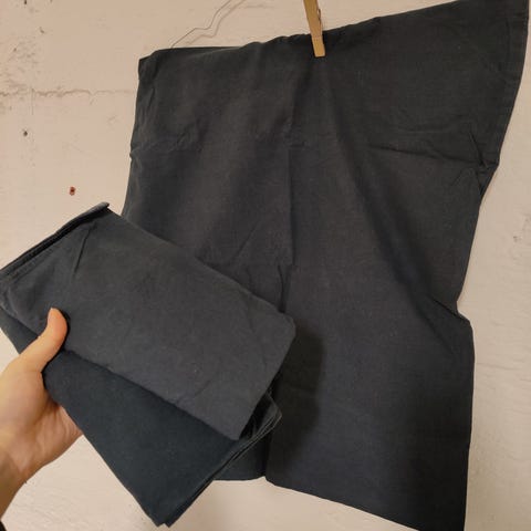6kpl tummansinisiä tyynyliinoja normaalin nukkumätyynyn koossa. Kangas hiukan karhea joten en herkkihipiäiselle antaisi petivaatteeksi mutta esim. Sisustukseen käypäiset.