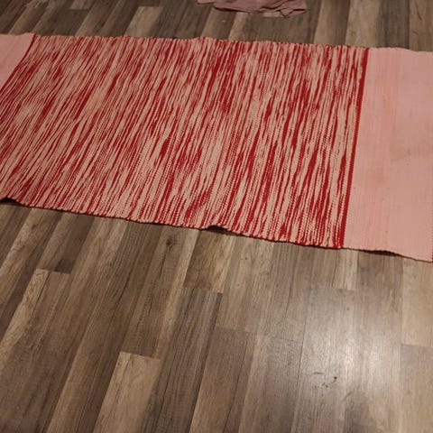 Joulukuusen matto, jonka halkaisija on n. 117 cm. Käytetty, yhdessä kohtaa on jostain tullut punaista väriä, mutta muuten ihan ok kuntoinen.