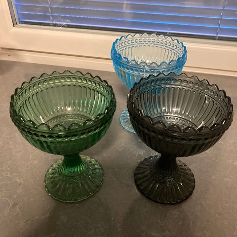 Marimekko Mariskooli jälkiruokamalja, tilavuus 150 ml, väri ultramarinsininen. Valmistettu Suomessa ja kuuluu Suomi 100 tuotantoon vuodelta 2017, jolloin juhlateeman väri oli ultramariini.