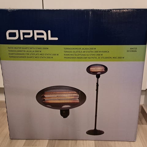 Opal sähkölämmitin, 5-palkkinen. Lämmityslaite, jossa säädettävä termostaatti ja matala sekä korkea lämmitysteho. Pieni mutta tehokas, juuri käytössä ollut.