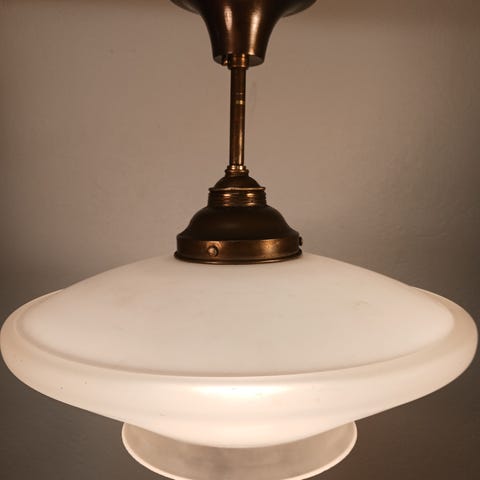 Vanha suurikokoinen ja toimiva kattovalaisin / plafondi.Halkaisija n 70cm, korkeus n 30cm. Valmistaja ei tiedossa. Kangas hyvässä kunnossa.Nouto Porvoosta tai mahdollisesti toimitus omien menojen mukana lähiseudulle. Postitus myös mahdollinen 23€ postipaketti + 10€ varovasti kuljetettavan lisä. Toridiilillä ei onnistu näin ison lähetys.