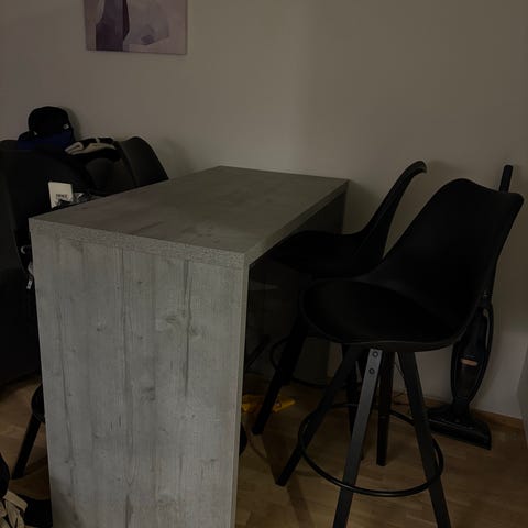 Askon oslo pöytä ja neljä säädettävää baari jakkaraa. Nouto onnistuu 19.12 alkaen.