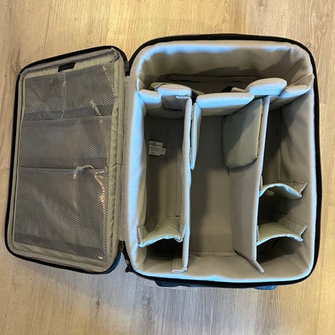 Siistissä kunnossa oleva Lowepro Pro Runner RL x450 AW II. Tilava ja helposti muokattavissa oleva vetolaukku pidemmillekkin kuvausreissuille, sisältä löytyy myös hihnta, joiden avulla laukusta tulee reppu. Pientä normaalia kulumaa. Vetokahvan mekanismi hieman löysä, joten se tippuu alas, kun siitä ei pidä kiinni, muutoin pelittää.