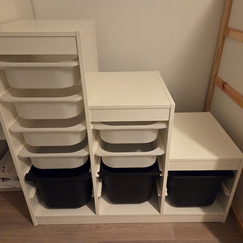 Ikea Toftan kaappi. Mitat 130x120x41cm. Kaapinnyläreunassa kulumaa, mutta maalilla saa piiloon. Ei huomaa ovien ollessa kiinni. Mmm