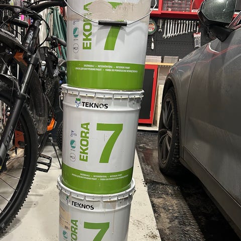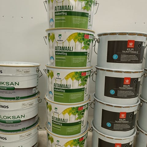 Teknos Nordica MATT 18L PM1 sävytettävä, vaaleat sävyt. 1 kpl avaamattomia. Ovh. noin 220 euroa / kpl, hinta 100 euroa / kpl.