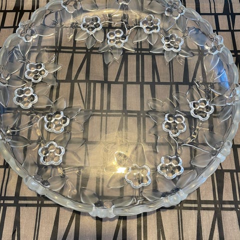 Lasinen tarjoilulautanen.