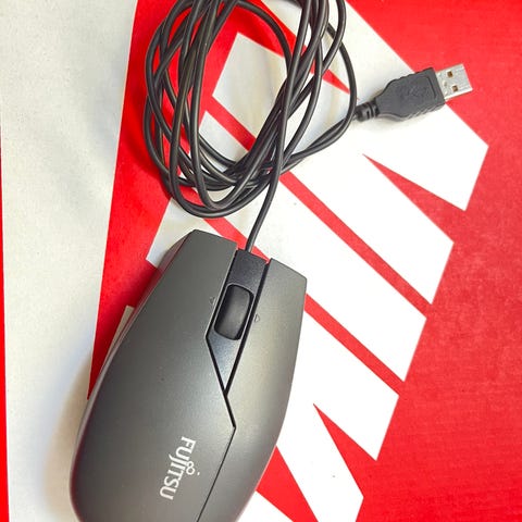 Fujitsu langallinen hiiri. Musta väri ja USB-liitäntä.