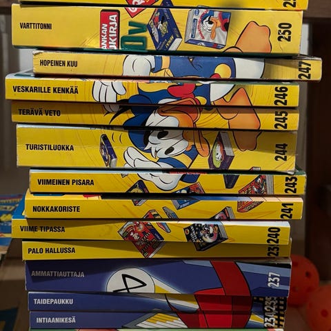 Iso läjä Aku Ankan taskukirjoja,