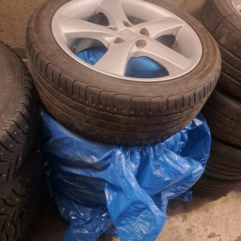 Yhden talven ajetut nasta renkaat jääneet nurkkiin pyörimään. Renkaat olivat 2004 vuotisen mazda 6:sen alla.