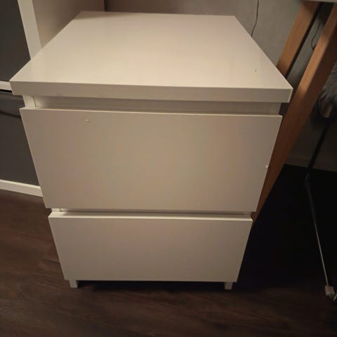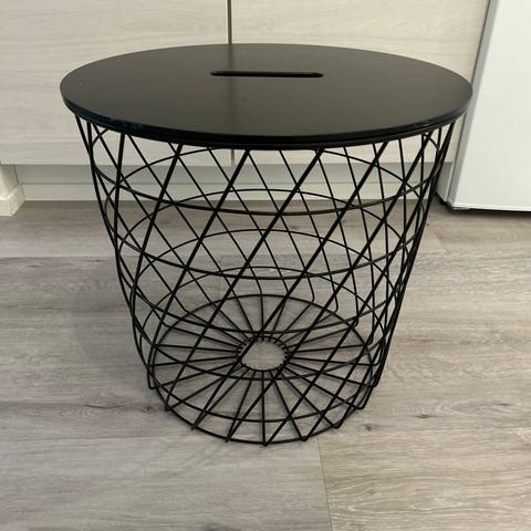 Valkoinen olohuoneen pöytä. Ikean apupöytä.