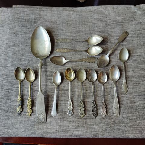 Myydään kuvanmukaiset 3 kpl vanhoja lusikoita (alpakkaa), pituudet n. 12 cm.