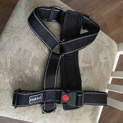 Rukka koiran vajaat, neonkeltaiset, heijastavat. Valjaat on valmistettu kestävistä materiaaleista ja niissä on heijastavat ominaisuudet näkyvyyden parantamiseksi. Valjaiden koko XL/XXL. Meidän ”hoikkapojalle” liian isot valjaat. Valjaiden saumat täysin ehjät. Valjasmateriaali muutenkin täysin ehjää. Soljet toimii. Nämä on siis Y-valjaat. Lähetys toridiilinä. Myös nouto.