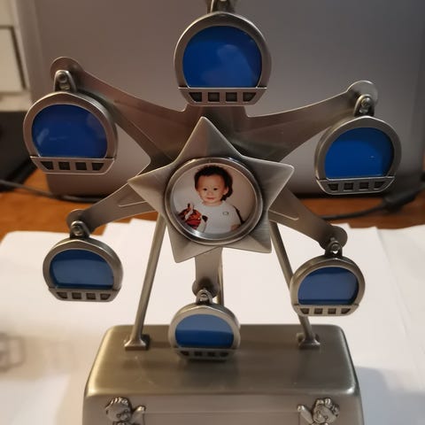 Valokuva kehys rusetti ja nalle 3:lle kuvalle.
