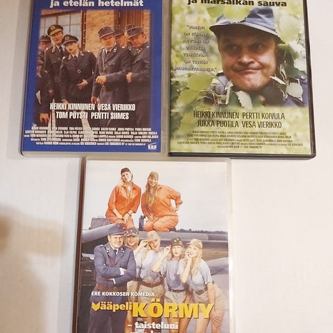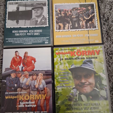 Myydään kaikki Vääpeli Körmy elokuvat(5 kpl) yhdessä. Katsottu juuri läpi ja toimivat.Hinta kaikille yhteensä.Hintaan lisätään mahdolliset postikulut. Voit myös tarjota järkevää hintaa.