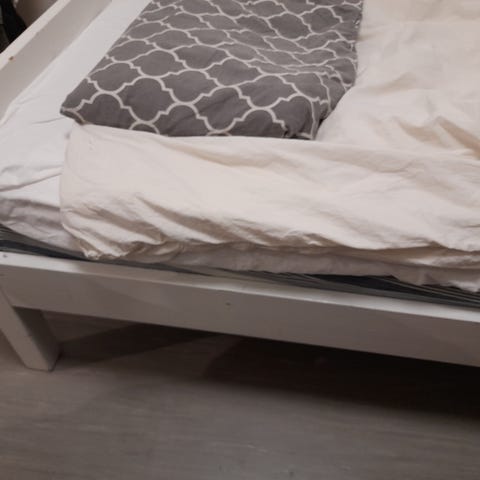 Mummolassa tarpeettomaksi jäänyt Niemen tehtaiden valmistama kerrossänky patjoineen, vaikka seuraavaan mummolaan. Maalattu valkoiseksi. Käytön jälkiä löytyy. Patjat ehjät ja siistit. Toinen hieman iso ja toinen hieman pieni. Sängyn koko n. 65x158 cm. Kokonaiskorkeus 146 cm. Itse tehdyt tikkaat saa tarvittaessa mukaan. Niiden käyttö tietysti omalla vastuulla. En lähetä. Hinta sisältää sängyt ja patjat. Voidaan myydä myös yksi sänky patjoineen 130 €