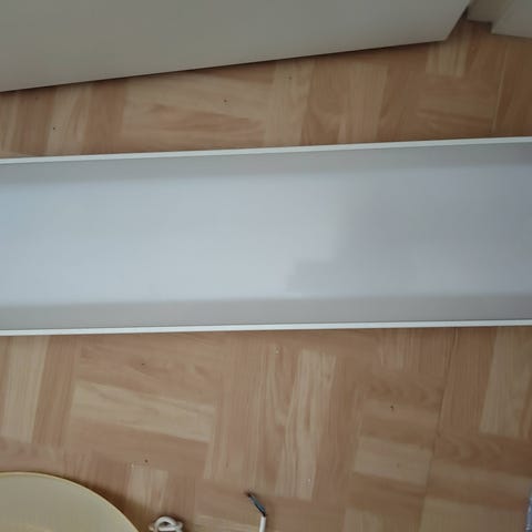 Loisteputkivalaisin pistorasialla. Ollut kylpyhuoneen peilikaapin päällä.