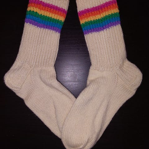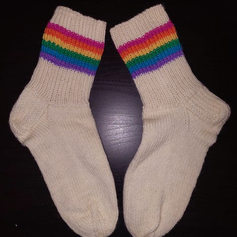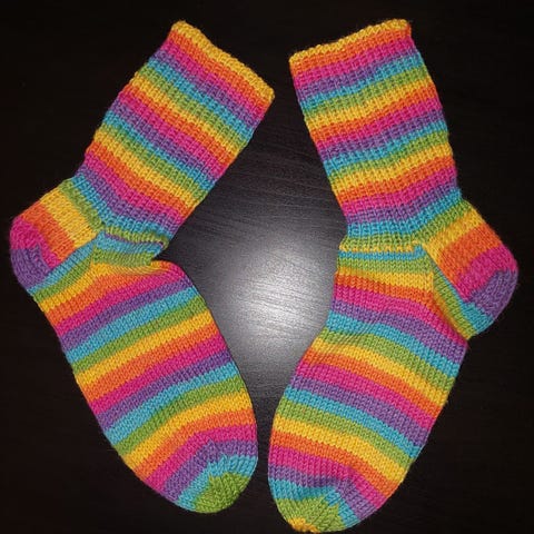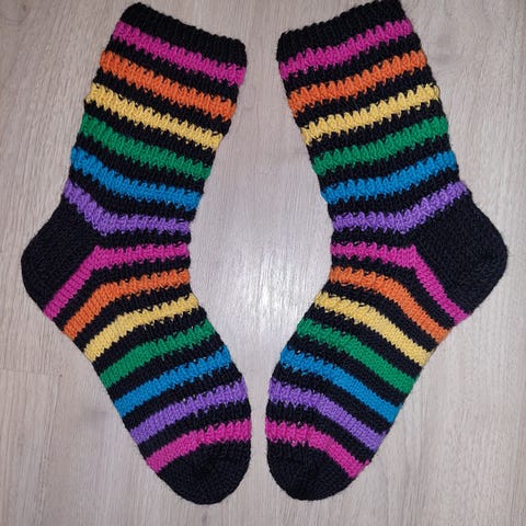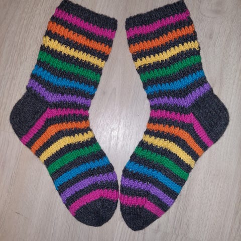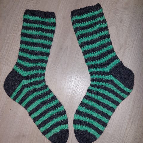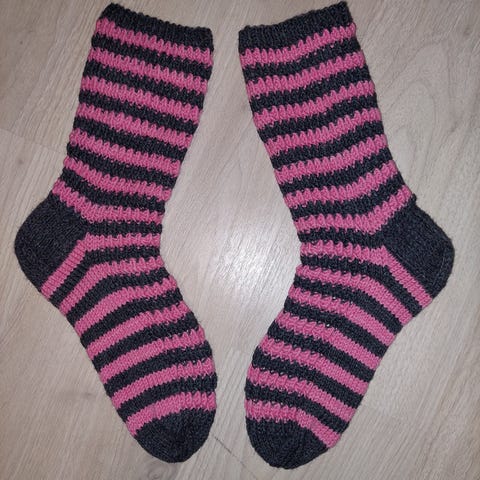 Raidalliset villasukat, koko 41. Käsintehdyt ja konepestävät.