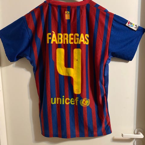Myydään aito FC Barcelonan kauden 2012-13 kotipelipaita. Selässä #4 Fabregas nimi ja numero. Hihoista löytyvät hihamerkit.
