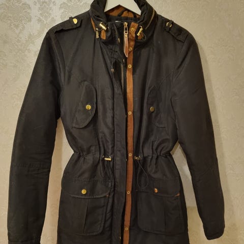 Siisti musta vähän pidetty talvitakki kauniilla yksityiskohdilla. Koko pieni M