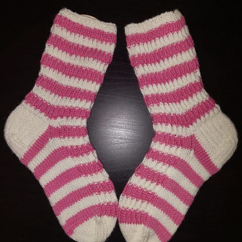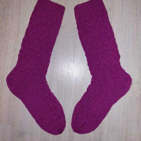 Raidalliset villasukat, koko 42. Käsintehdyt ja konepestävät.