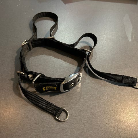 Keskikokoisen koiran (lagotto) vedonestopanta. Kerran kokeiltu omalle koiralle, ei sopinut.