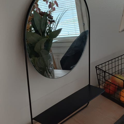 Ehjä kolmiosainen peili. Puukuvio. Kiinnitys tepillä tai liimalla. Palan koko leveys 79cm, korkeus 39cm.