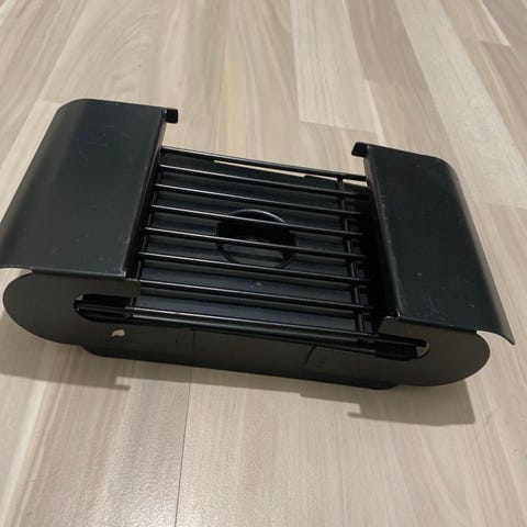 Kuvan mukaan,kätevä ja helposti mukaan otettava grilli talviselle retkelle. Kansi pikalukoilla, sisään voit pakata hiilet ym. Kuvassa ritilät,jotka menee sisälle.