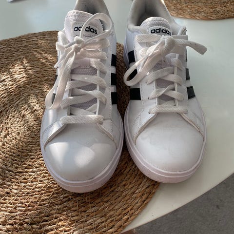 Myydään Adidas-tennarit, koko 37,5. Väri vaalea, cloud foam-pohja. Hyvä kunto!