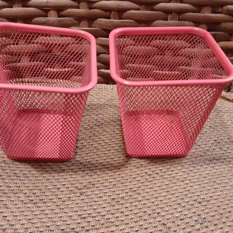 Pärekori esim. lankojen säilytykseen. Toinen kahva puuttuu. Korkeus 12cm ja leveys 35cm.