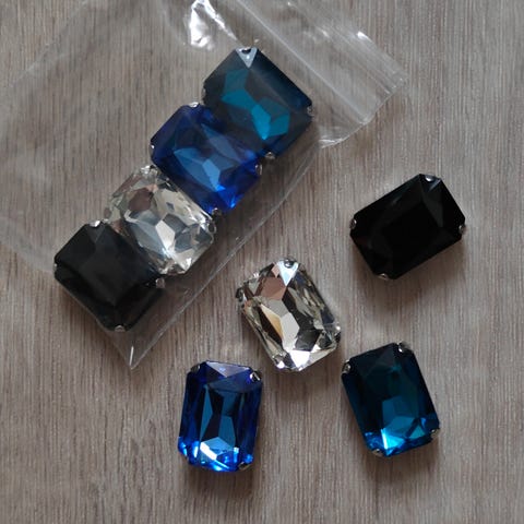 Ostettu noin kuusi vuotta sitten eBaystä. Nämä voi ommella kiinni kankaaseen strassin sivuilla olevien reikien läpi. Käyttämättömät, mutta pinta on joissakin hieman kehnompi kuin toisissa. Joissakin voi olla suurempia naarmuja. Jos haluat tarkempia kuvia pinnoista, ilmoita minulle