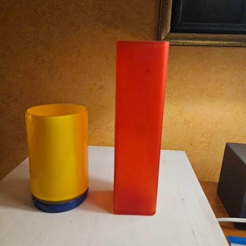 Yhteensä 20kpl kuvan mukaisia metallisia ruukkuja/maljakoita myynnissä, 10kpl kumpaakin mallia. Musta osa metallia jonka sisällä lasiputki. Yhden maljakon metalliosa hiukan vääntynyt ja yhdestä maljakosta lasiputken suusta lähtenyt pieni pala, kumpikin silti käyttökelpoisi. Käytetty vain yksien häiden ajan joten kunto muuten kuin uusi. Korkeus n. 15cm ja lasiputken halkaisija n. 3,5cm. Voin myös postittaa hyvin paketoituna.
