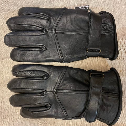 Miesten ruskeat isokätisen talvinahkahanskat, kulumaa sormenpäissä sisäpuolella, muuten ehjät.