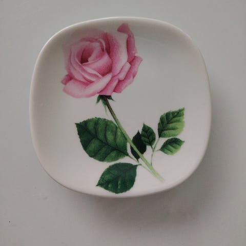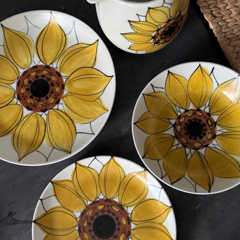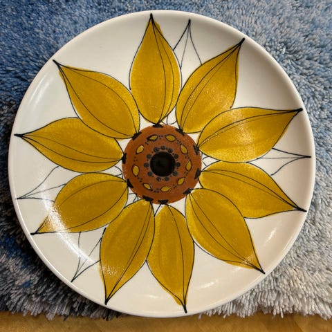 Arabian Aurinkoruusu lautanen, halkaisja 23,5 cm. Pohjassa Hilkka-Liisa Aholan signeeraus.