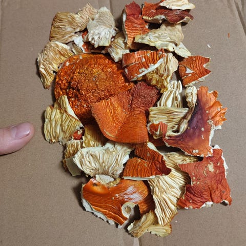Myydään laadukkaita, käsin poimittuja kokonaisia punakärpässienen lakkeja. Sato 8/2025