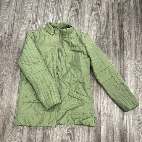Raskausaikaan sopiva ehjä, mukava ja kiva kevyttoppatakki. Mielestäni tämä on vähän lämpimämpien päivien talvitakki tai välikausitakki, mutta varmaan läpi talvenkin voi tällä pärjätä, jos on lämmintä alla. Nouto Herttoniemestä.