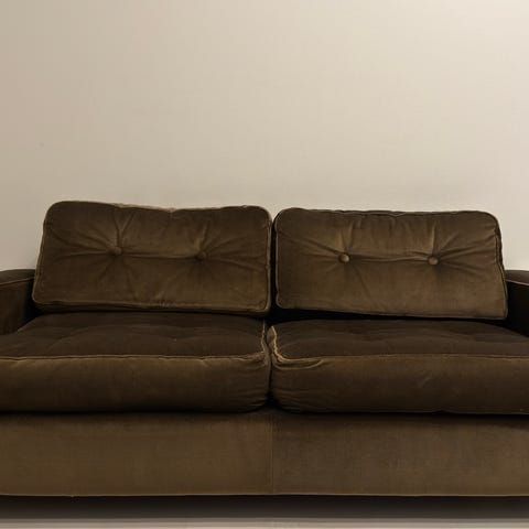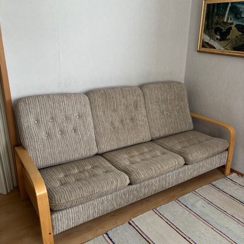 Tämä sohva on osa huonekalusarjaa, mihin kuului aikoinaan myös pöytä. Setti ostettiin uutena n. 1967.