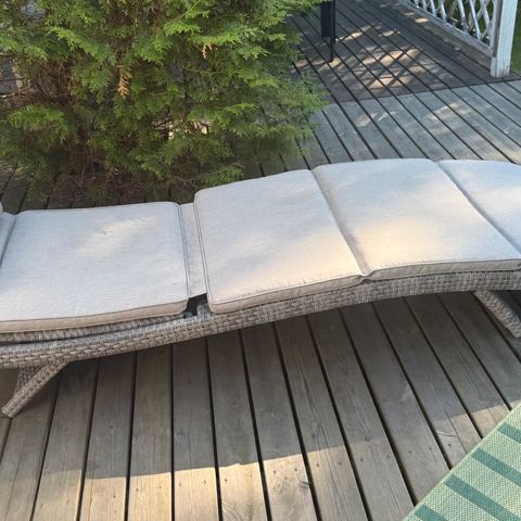 Myydään kaksi laadukasta Suvi-aurinkotuolia. Tyylikäs natural/musta polyrottinki sekä harmaat, mukavat pehmusteet.