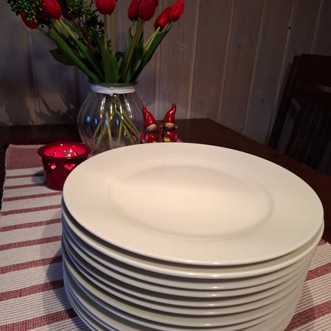 5 kpl 30cm matalia lautasia, käytetty muutamia kertoja. Laadukasta posliinia. 2 munakoison väristä (melkein musta), 2 terrakottaa ja yksi petroli.