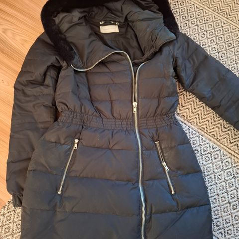 Selected Femme tummanvihreä untuvatakki, koko 38. Materiaalilappu taitaa olla leikattu irti kun en sitä löytänyt. Muhkea malli ja oversize istuvuus. Olalta helmaan 76cm, kainalosta kainaloon 59cm. Ei moitittavaa.