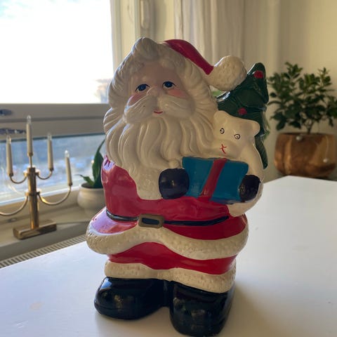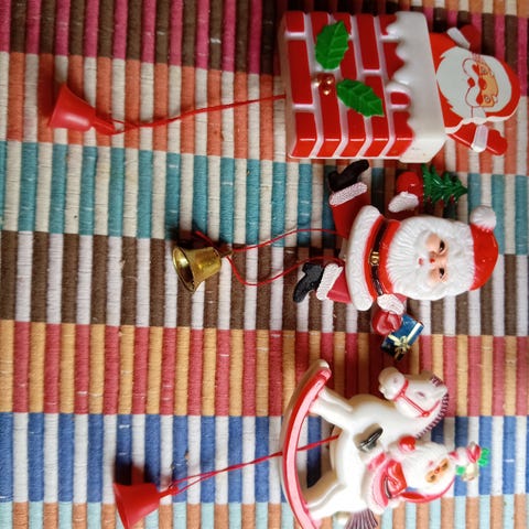 Vanha joulupukki soittorasia, musical box. 60-70-luvulta, vintage Ei ole kuitenkaan rasia, sävelenä "Kulkuset, kulkuset". Rasia pyörii musiikin soidessa, pukki ei liiku kunnolla enkä uskalla sitä pahemmin liikutella. Voi olla, että saa pukinkin liikkumaan :)