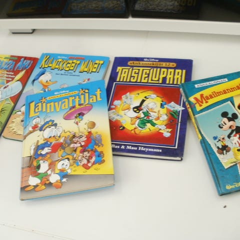Aku Ankka pehmeäkantiset sarjakuvakirjat sisältävät useita eri numeroita ja tarinoita. Kirjat ovat suomenkielisiä ja sisältävät klassisia Aku Ankka -seikkailuja. Kunto lähes uudenveroinen. Hinta on yhteishinta kaikille (26 kpl). Ei tinkimistä ja vain nouto.