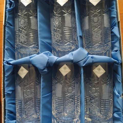 Tšekkiläistä kristallia, karahvi ja viisi lasia. Painavia. Kaikki ehjät.