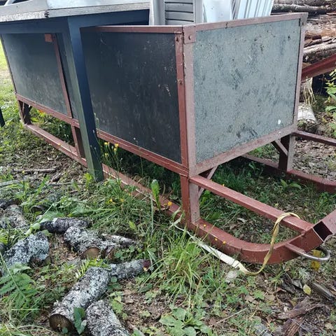 Puuinen kalakelkka. Kevyt. Kelkka on valmistettu puusta ja metallista, luonnollinen väri. Koko 200x70cm