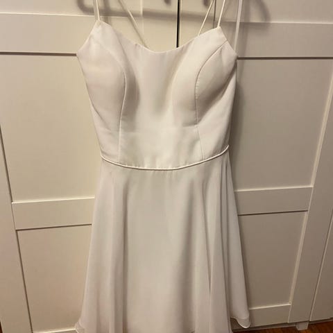 Kokomerkintä on 38, mutta ammattiompelijalla kavennettu yläosaa hieman ja sanoisin että vastaa nyt reilua 36 tai naftia 38 kokoa. Ollut käytössä tytöllä joka muutoin käyttänyt noin S kokoa. Kavennus tehty niin että on helppo itse purkaa myös alkuperäiseen 38 kokoon. Saa sovittaa ja lisäkuvia tai mittoja voin laittaa pyydettäessä!