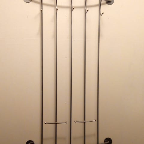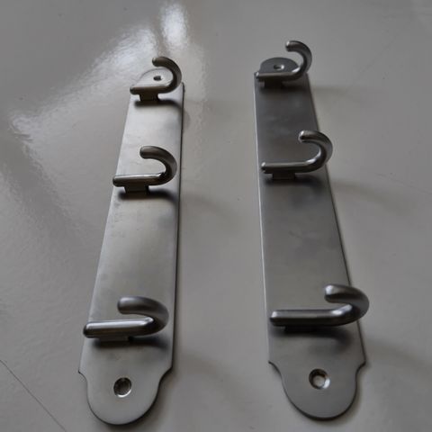 Myydään musta metallinaulakko. Leveys 108 cm, syvyys ja korkeus 25 cm. Yhdessä putkessa kulumaa yläpinnassa (näkyy kuvassa), muuten kunto hyvä. Koukkuja voi liikuttaa haluamaansa kohtaan. Alimmassa rivissä kaksi reunimmaista koukkua jumissa, mutta varmaan korjattavissa.