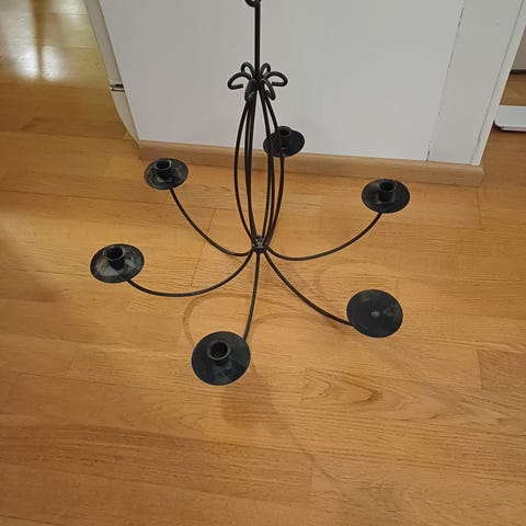Metallinen kynttiläkruunu, musta väri, suunniteltu läpivuoden käyttöön kynttilöitä vaihtamalla eri väriseksi saat uuden ilmeen.Kruunussa on 6 kpl kynttilänpidikkeitä ja koristeellisia yksityiskohtia, jotka sopivat sisustukseen .