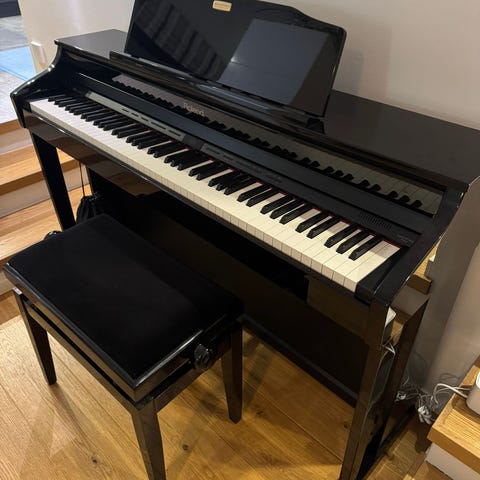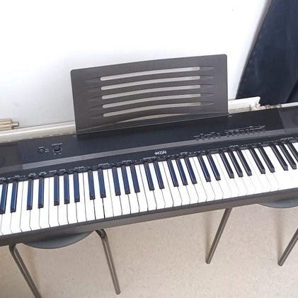Gear4music DP-6 digitaalipiano valkoisella värillä. Sisältää näppäimistön ja useita ohjauspainikkeita. Sopii musiikin harjoitteluun ja esityksiin.