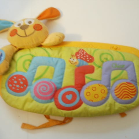 Iloisenvärinen perinteinen vauvan piano, jossa on soiteltavaa kahdessa rivissä. Ylärivissä ovat metalliset hakattavat laatat (leluun kuuluu pieni kapula) ja alarivissä pianon koskettimit, jotka myös pitävät metallista helisevää ääntä. Ei teräviä kulmia eikä irtoavia osia. Takana syvennys, joka toimii lelun kantokahvana. Leveys 40 cm. Myynnissä Lohjalla, mutta kulkeutuu ilman postikuluja omien menojen mukaan Kamppiin, Espoon Ikealle ja Espoon keskukseen. Hp. 15 euroa