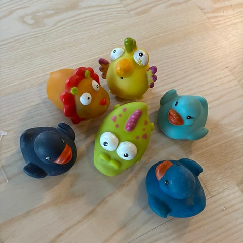 Vauvan ammeleluiksi tai rantaleikkeihin sopivia leluja: Legon kalahaavi, pelikaanit (nokassa avattava luukku), vesihyrrät, vene, johon voi pujottaa palikoita ja vihreä muovipaatti. Myynnissä Lohjalla, mutta kulkeutuvat ilman postikuluja Kamppiin ja Espoon Ikealle. Hp. 3-5 euroa/kpl. Nooan arkki ja vihreä vene myyty