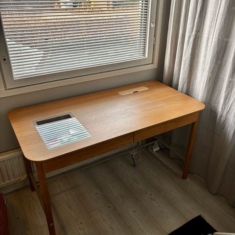 Pöytä alle vuoden ollut käytössä. Ei naarmuja ei jälkiä. Korkea laatu.